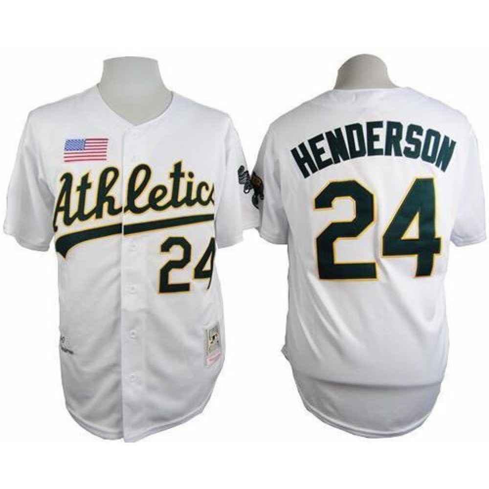 Mitchell And Ness 1990 Athletics #24 Rickey Henderson White Throwback Stitched MLB Jersey