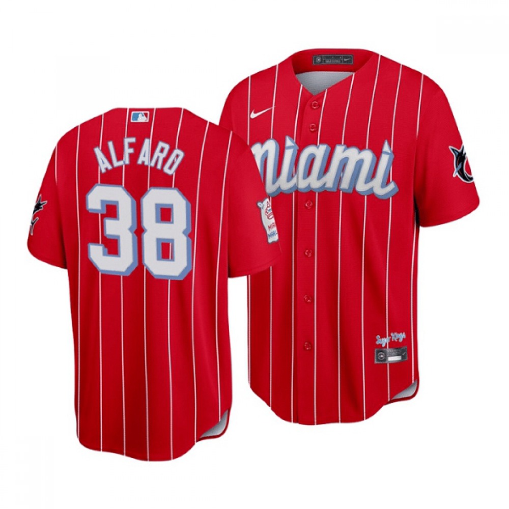 Men's Miami Marlins #38 Jorge Alfaro 2021 Red City Connect Cool Base Stitched Jersey