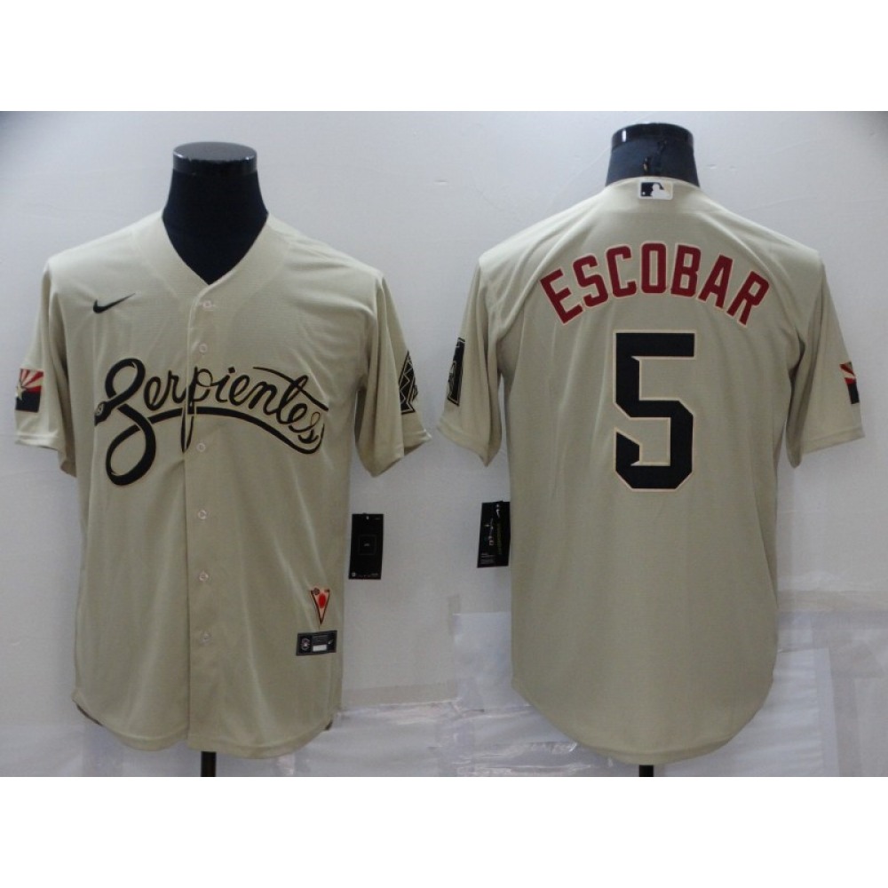 Men's Arizona Diamondbacks #5 Eduardo Escobar Cream Cool Base Stitched Jersey