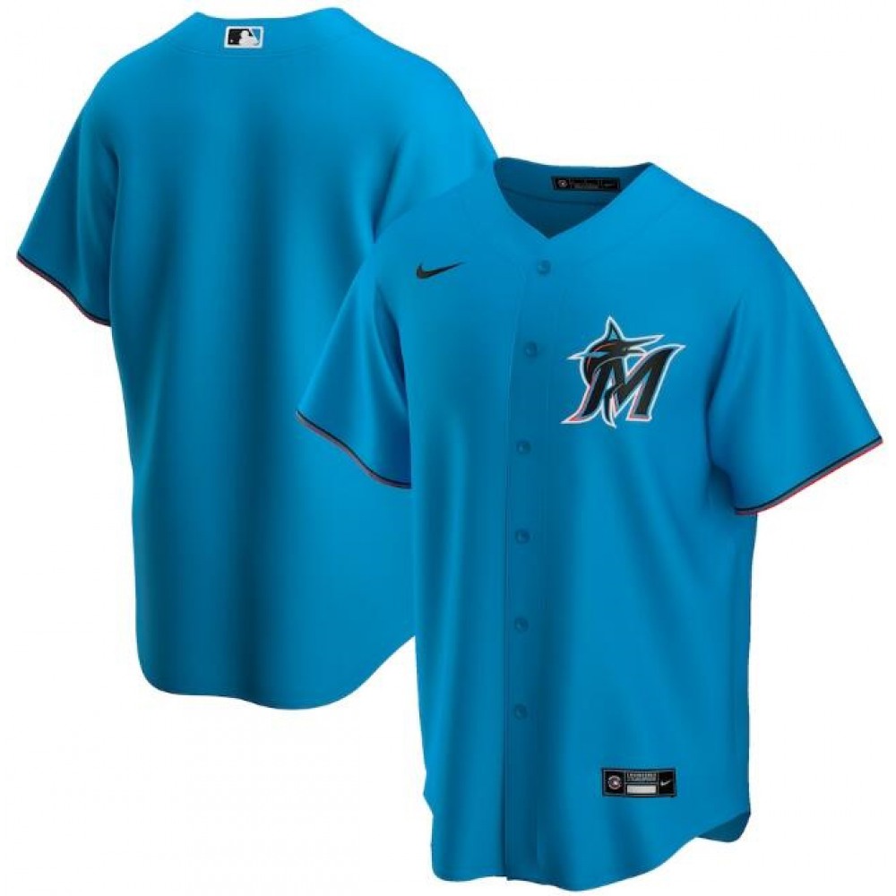 Men's Miami Marlins Blank Blue Cool Base Stitched Jersey
