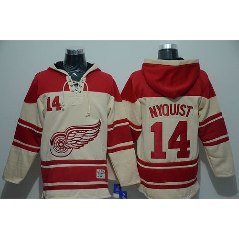 Red Wings #14 Gustav Nyquist Cream Sawyer Hooded Sweatshirt Stitched NHL Jersey