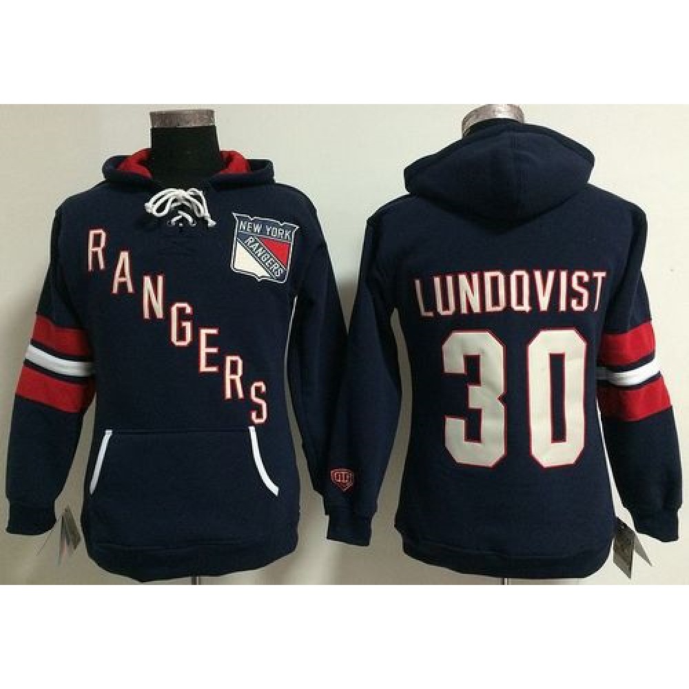 New York Rangers #30 Henrik Lundqvist Navy Blue Women's Old Time Heidi NHL Hoodie