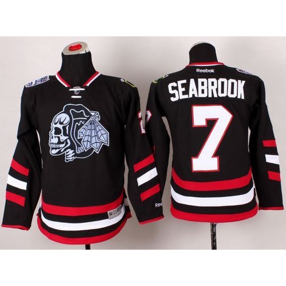 Blackhawks #7 Brent Seabrook Black(White Skull) 2014 Stadium Series Stitched Youth NHL Jersey