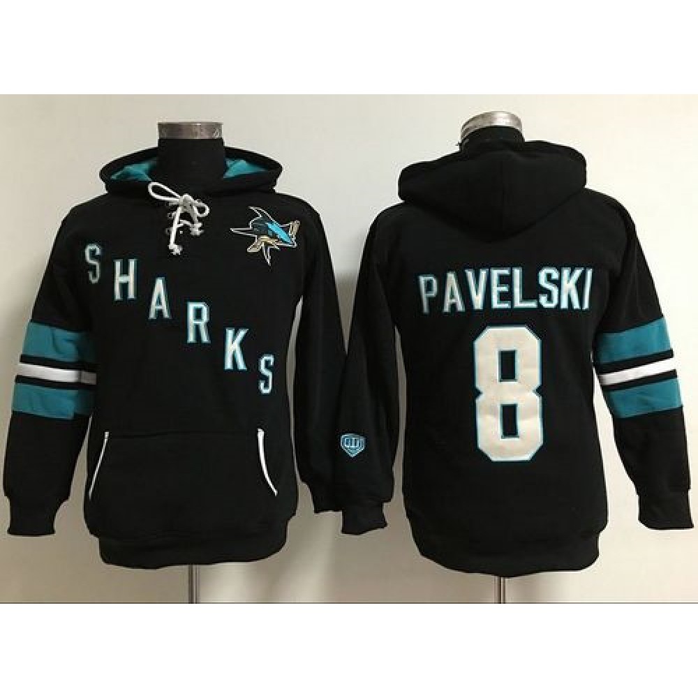 San Jose Sharks #8 Joe Pavelski Black Women's Old Time Heidi Hoodie NHL Hoodie