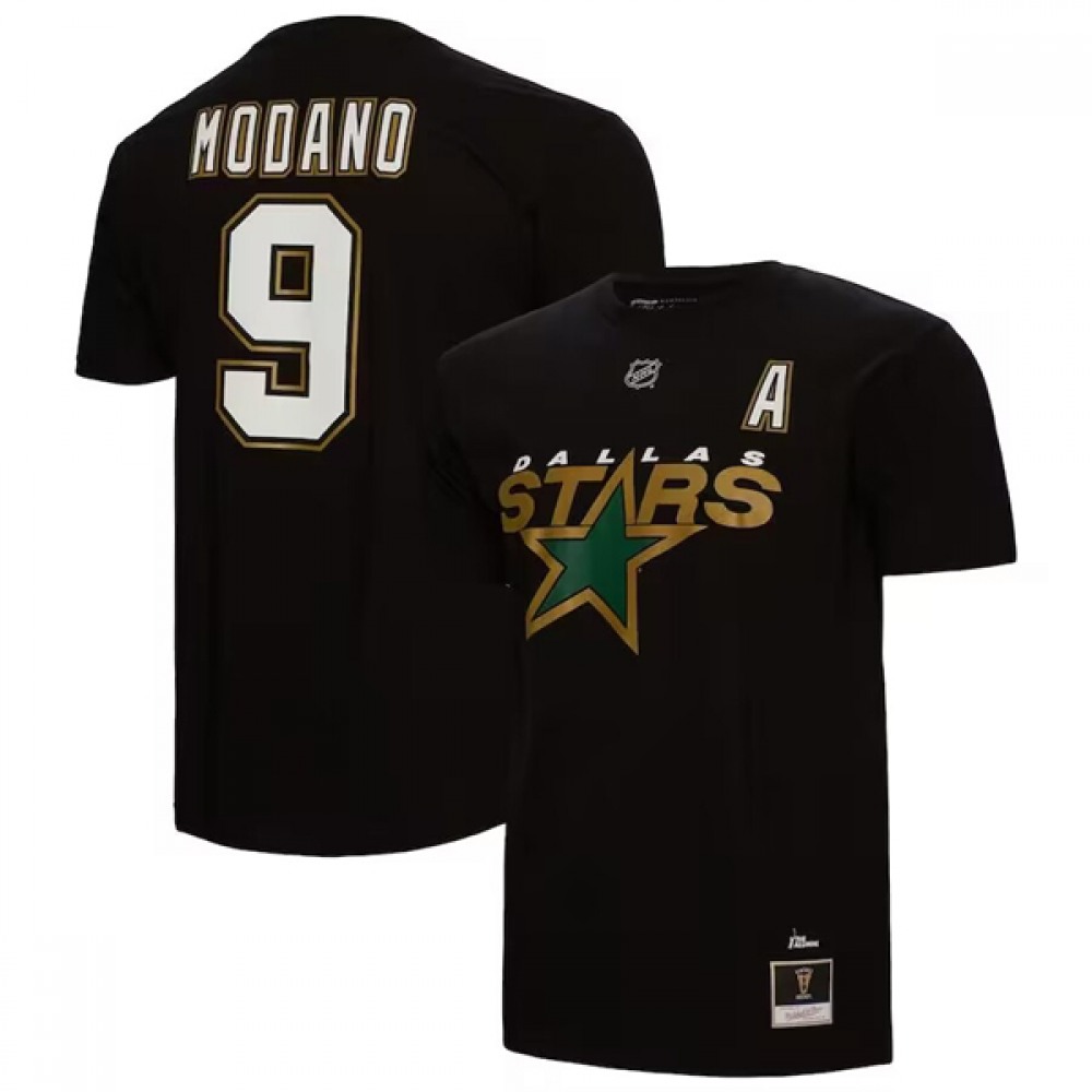 Men's Dallas Stars #9 Mike Modano Black Mitchell & Ness T-Shirt