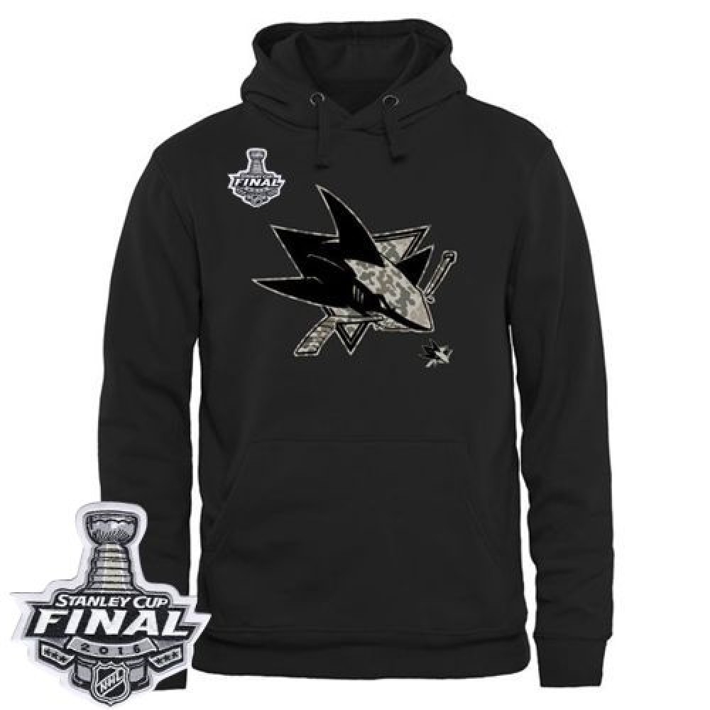 Men's San Jose Sharks Black Rink Warrior Pullover 2016 Stanley Cup Final Patch Hoodie
