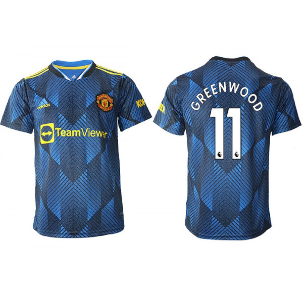 Men's Manchester United #11 Mason Greenwood Blue Away Soccer Jersey