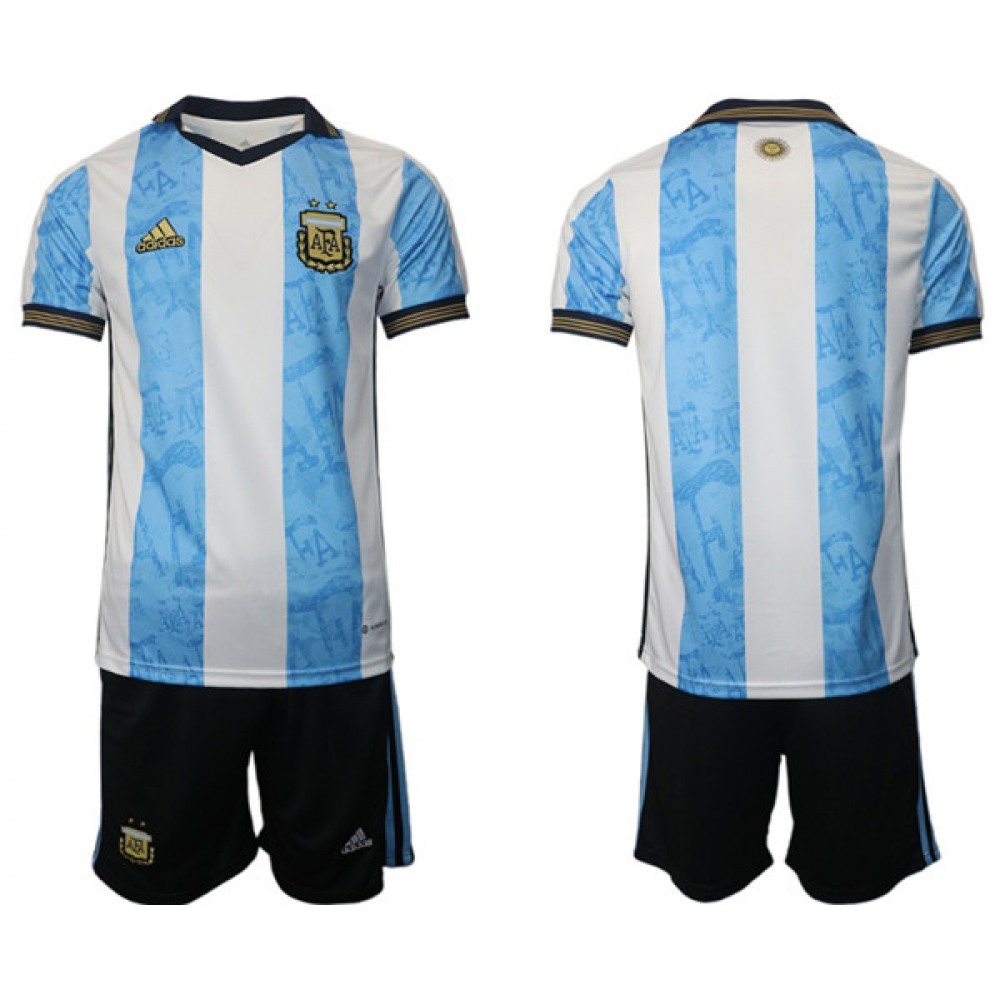 Men's Argentina Blank White/Blue Home Soccer Jersey Suit
