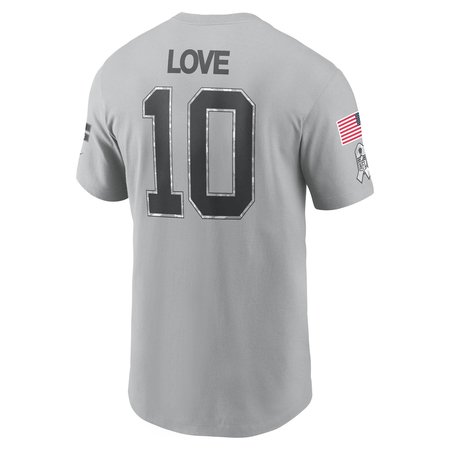 Men's Green Bay Packers Jordan Love Gray 2024 Salute To Service Name & Number T-Shirt