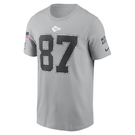 Men's Kansas City Chiefs Travis Kelce Nike Gray 2024 Salute To Service Name & Number T-Shirt