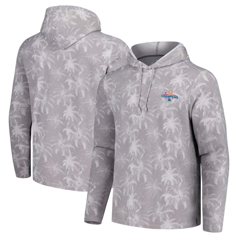 Men's Los Angeles Dodgers Tommy Bahama Gray 2024 World Series Champions Sport Palm Frenzy Pullover Hoodie