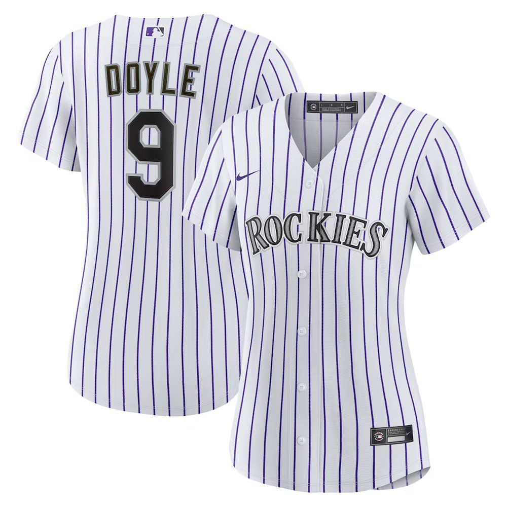 Women's Colorado Rockies #9 Brenton Doyle White Home Replica Jersey