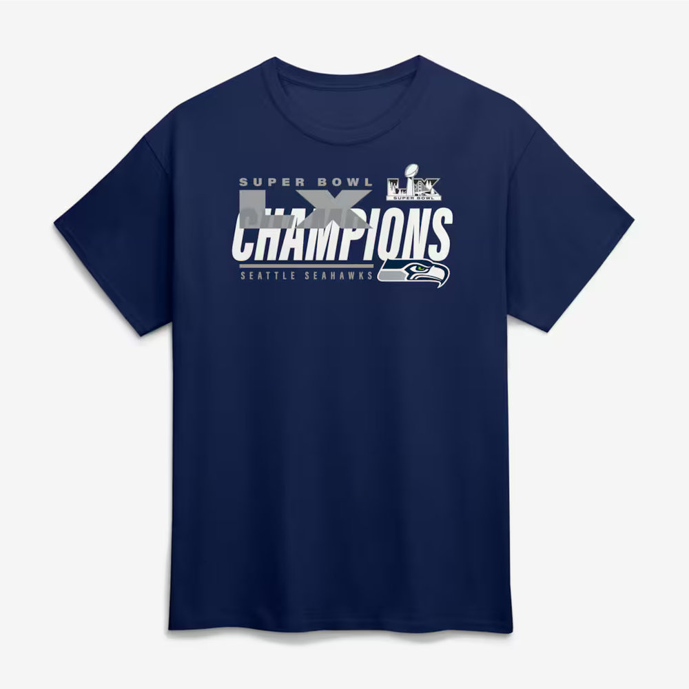Men's Seattle Seahawks College Navy Super Bowl LX Champions Iconic Victory T-Shirt