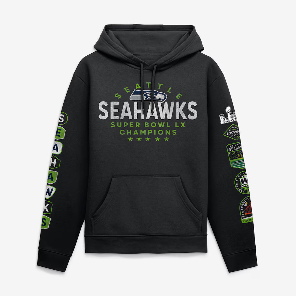 Men's Seattle Seahawks Black Super Bowl LX Champions Banner Year Hoodie