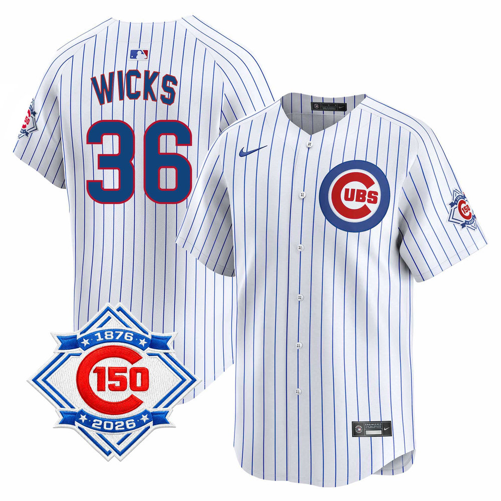 Men's Chicago Cubs #36 Jordan Wicks White Nike Home Vapor Limited 150th Anniversary Authentic Lettering Jersey