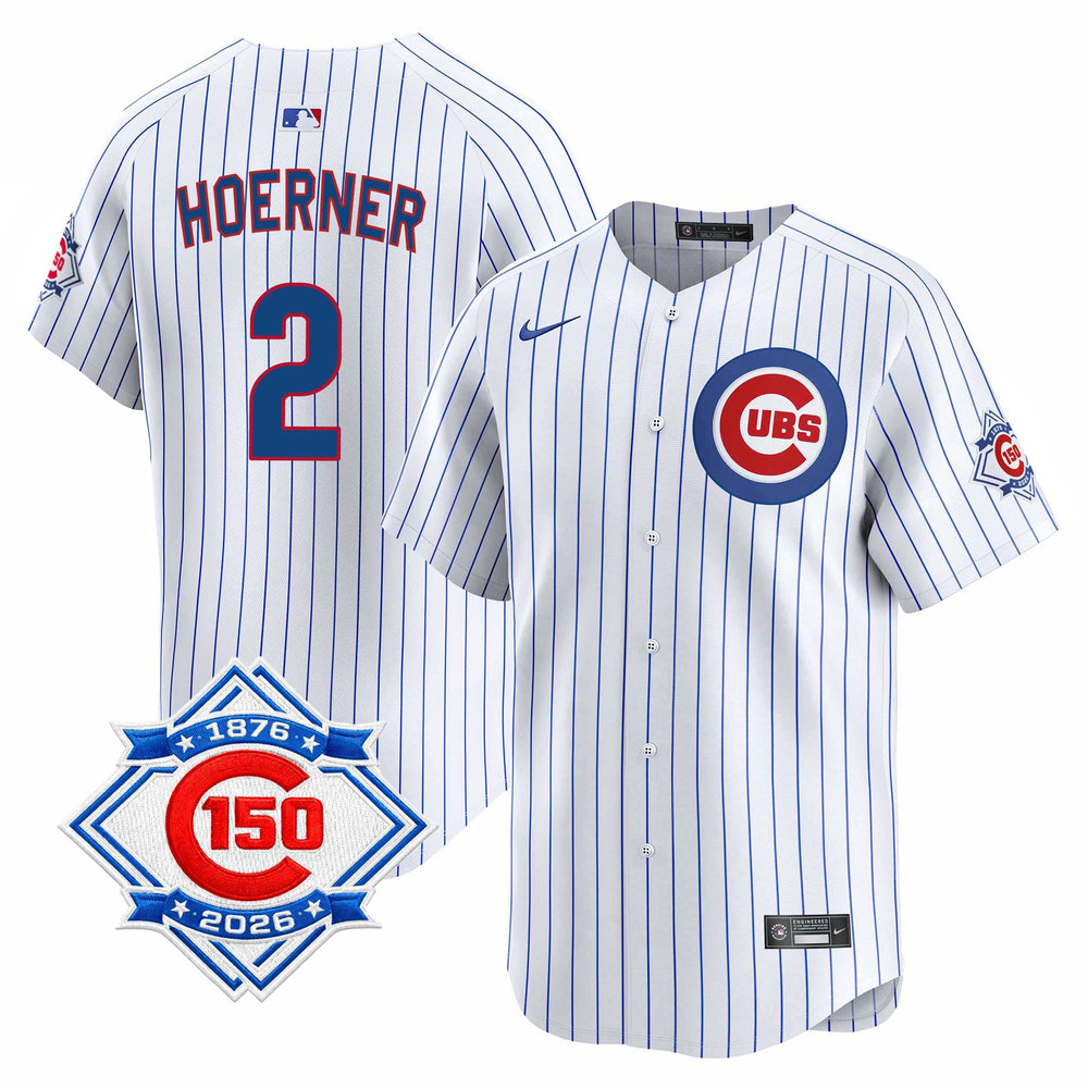 Youth Chicago Cubs #2 Nico Hoerner White Nike Home Vapor Limited 150th Anniversary Authentic Lettering Jersey