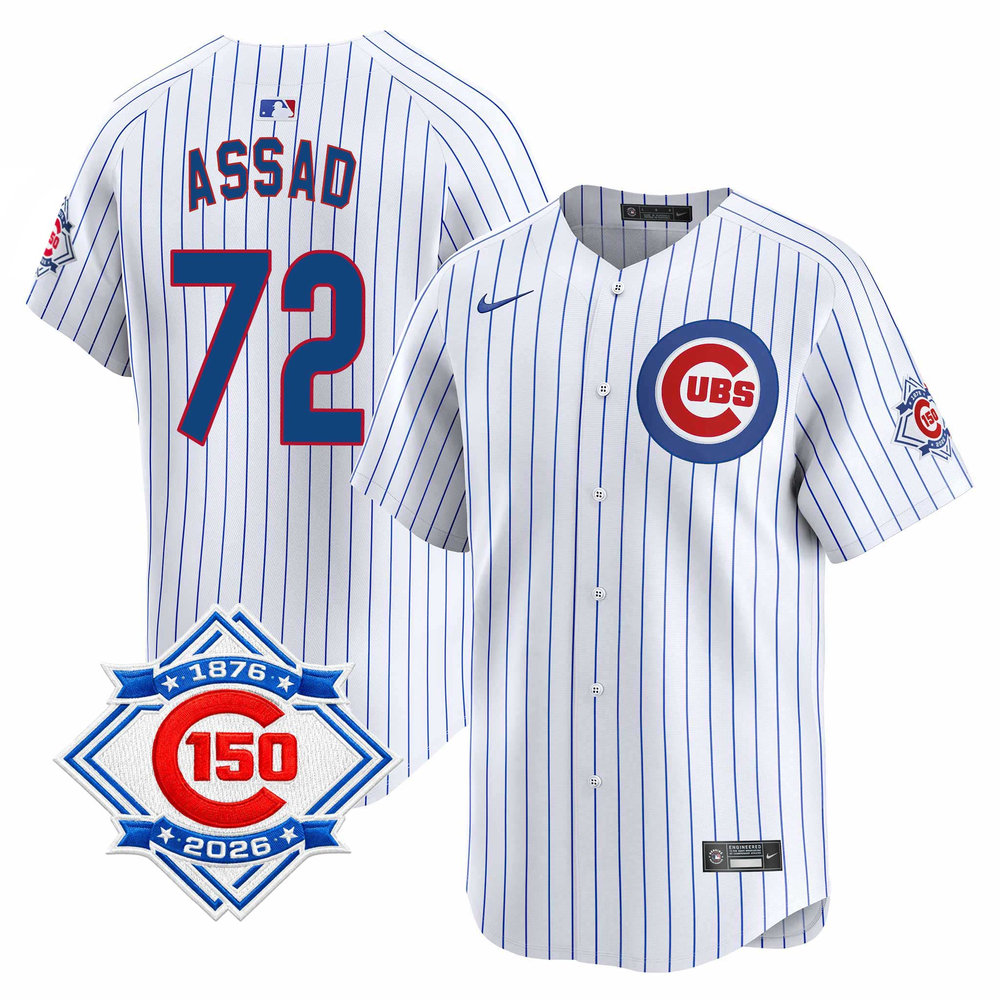 Youth Chicago Cubs #72 Javier Assad White Nike Home Vapor Limited 150th Anniversary Authentic Lettering Jersey