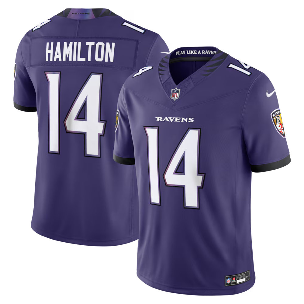 Men's Baltimore Ravens #14 Kyle Hamilton Nike Purple Vapor F.U.S.E. Sewn Down Limited Jersey