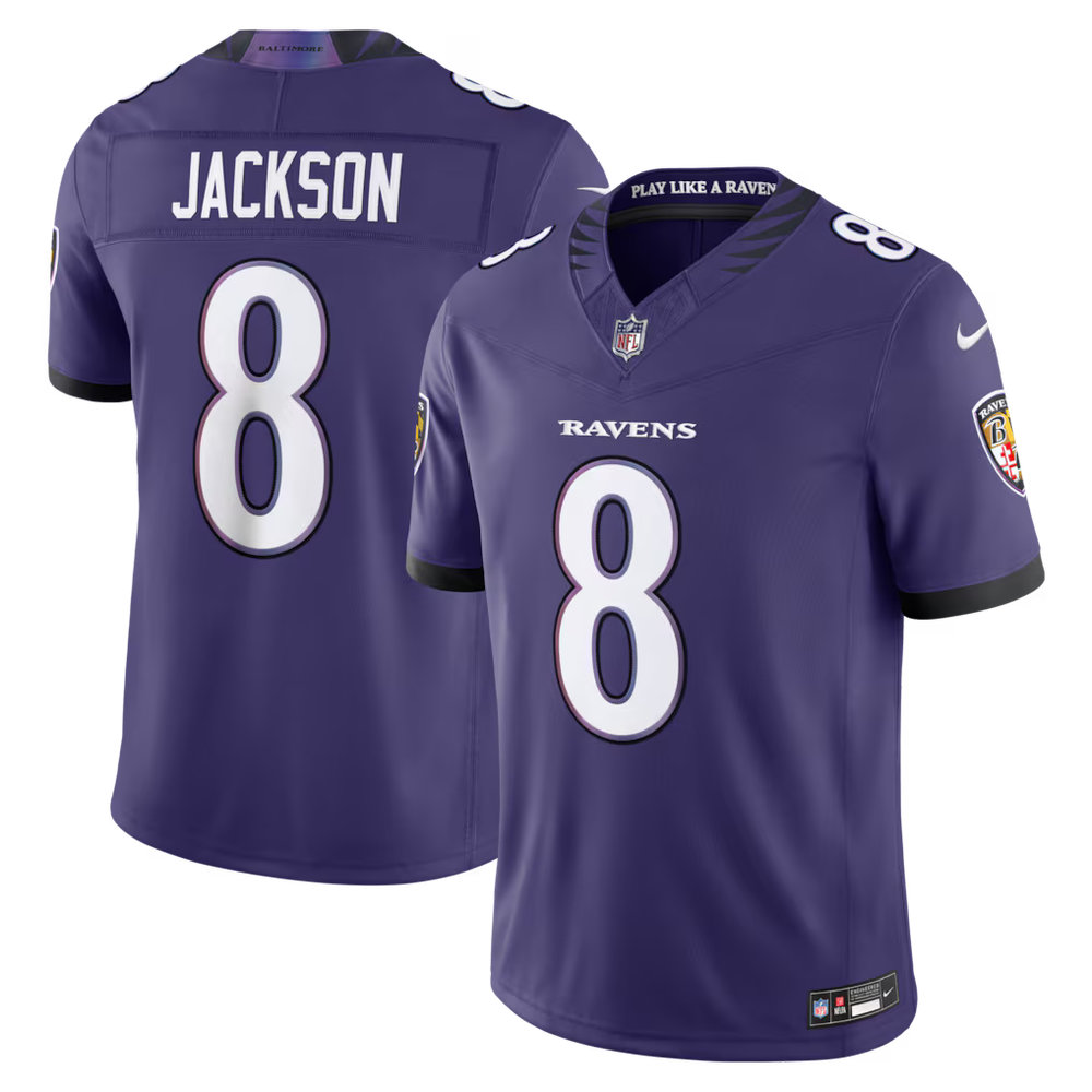 Youth Baltimore Ravens #8 Lamar Jackson Nike Purple Vapor F.U.S.E. Sewn Down Limited Jersey