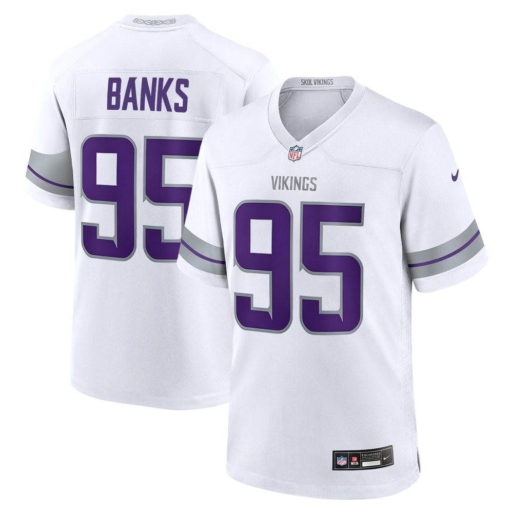 Men's Minnesota Vikings Caleb Banks White 2026 NFL Draft Game Jersey